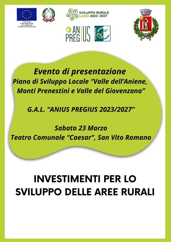 Il GAL “Anius Pregius”, al fine di agevolarne la conoscenza da parte delle nostre comunità e degli addetti ai lavori operanti nel nostro contesto rurale, dopo il positivo debutto di venerdì 1 marzo a Subiaco, propone un secondo incontro territoriale, finalizzato alla presentazione del nuovo soggetto, delle potenzialità che esso esprime e, in linea generale, dei tempi e modi di accesso ai canali di sostegno finanziario che saranno resi disponibili al pubblico.